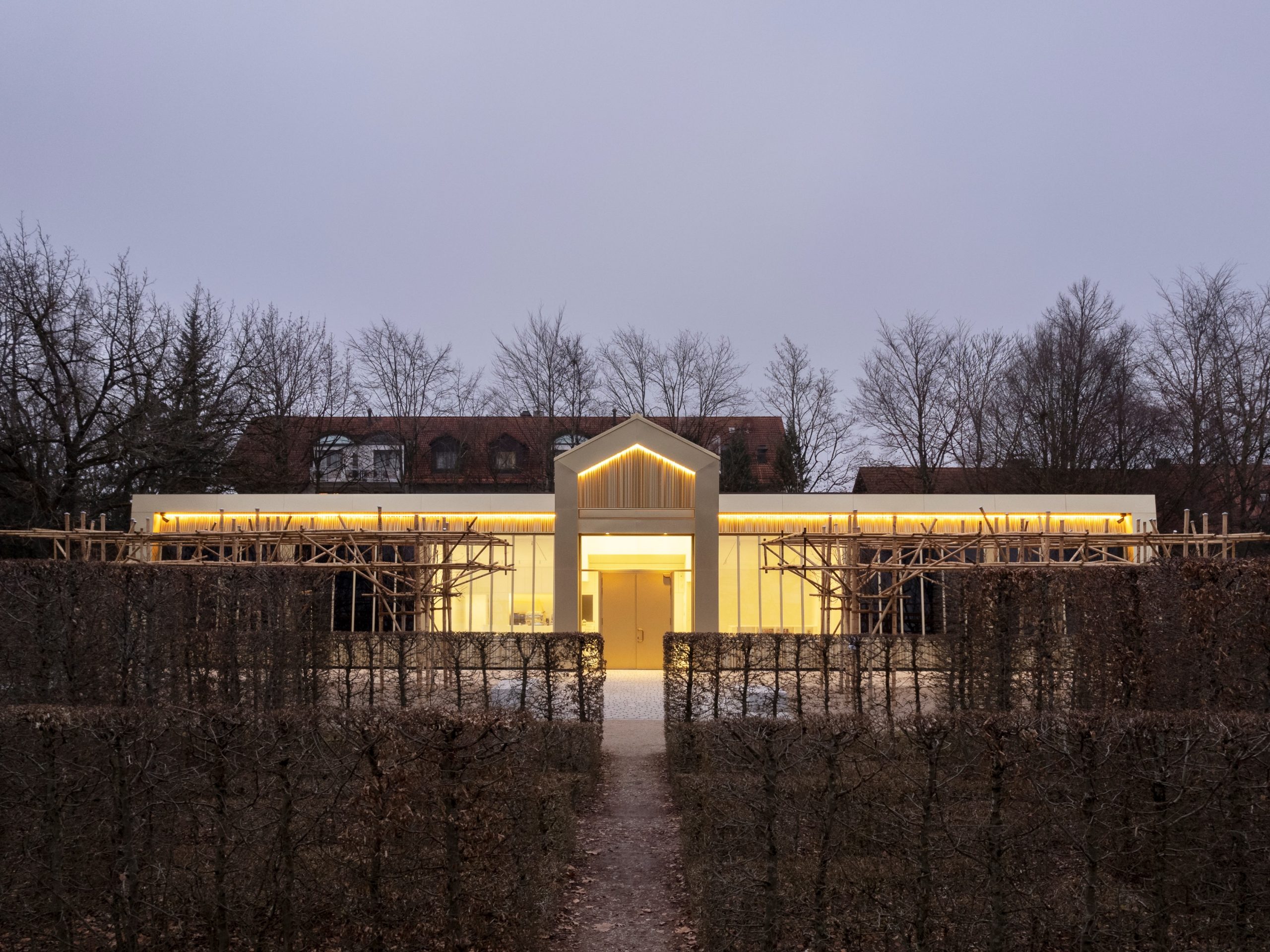 Der bisher ungegliederte Vorplatz wurde als eigenständiger landschaftlicher Akzent im Schlosspark gestaltet, der behutsam zwischen Museum, Topiary und der englischen Parkanlage vermittelt. Zwei Baumkarrees aus Amberbäumen auf dem Vorplatz, die im Herbst ein betörendes rotes Farbspiel verbreiten, dienen zukünftig als Schattenspender und Regenschutz mit Sitzgelegenheiten im Freien und verbessern zudem das Mikroklima.
