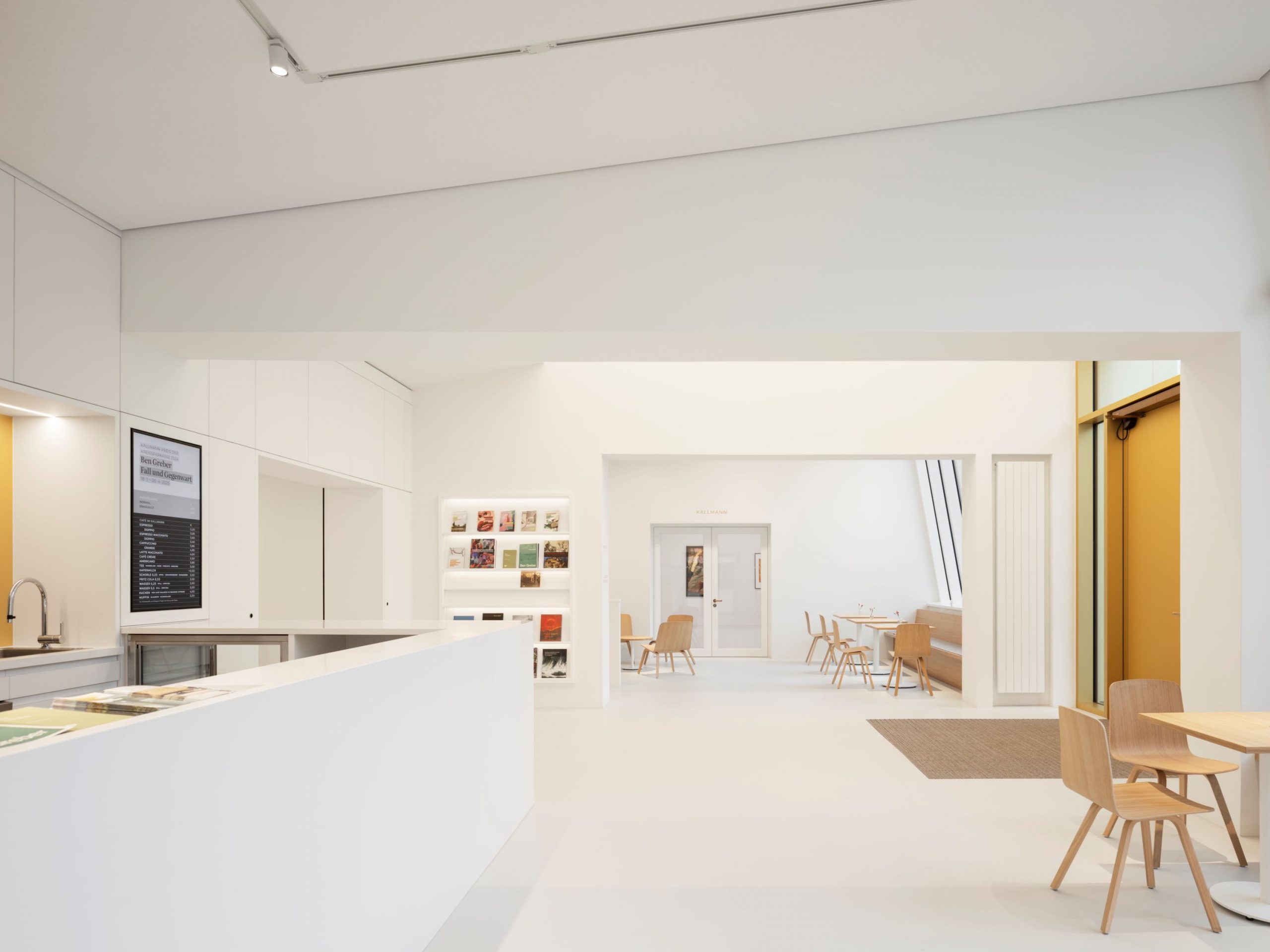 Im Foyer wurde ein Aufenthaltsbereich mit einem Café eingerichtet, in dem Kaffee und Kuchen mit angeboten werden.