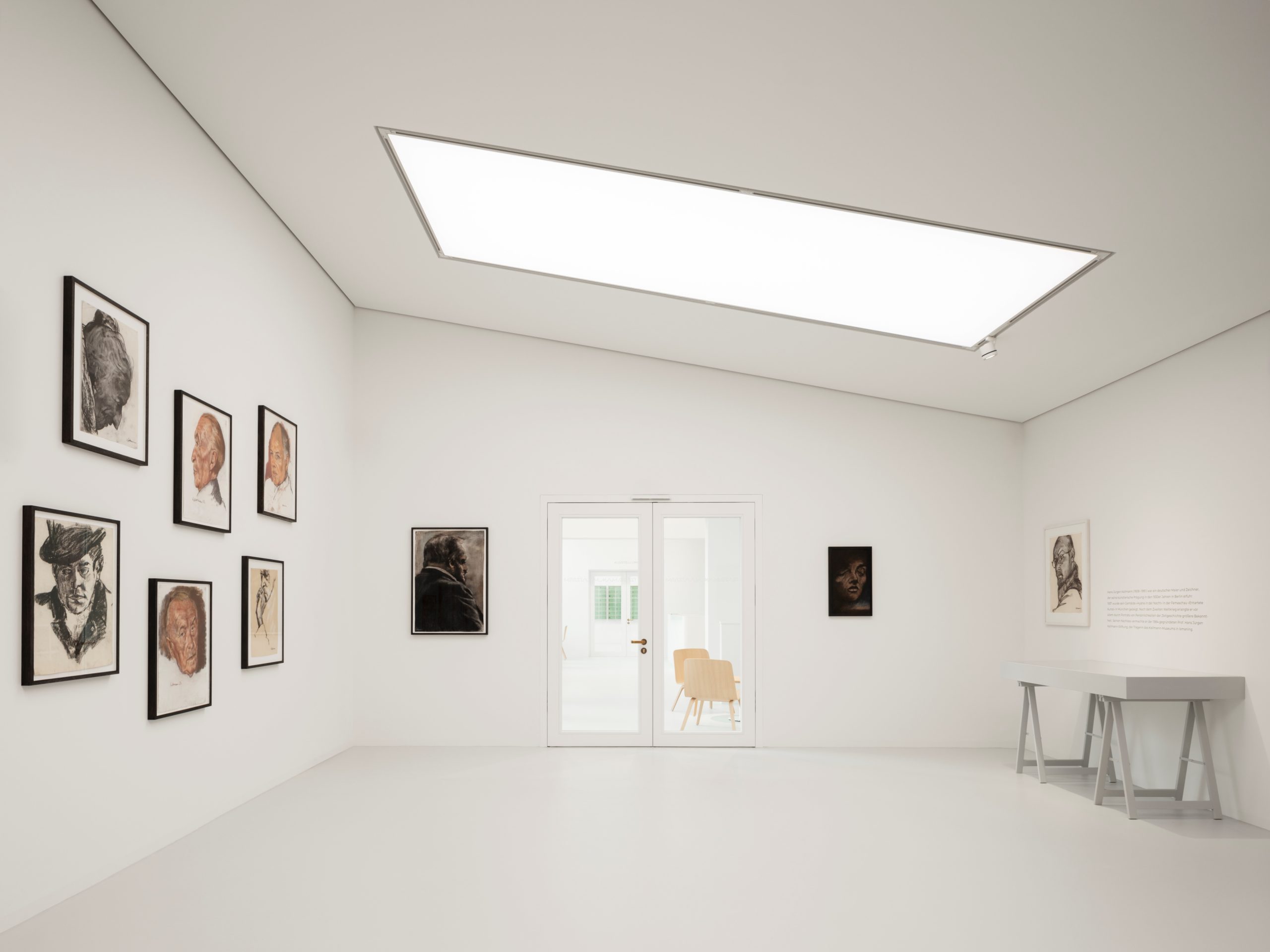 Das Innere des Museums präsentiert sich als moderner Museumsbau mit klaren, reduzierten Formen. Lichtdecken in den Ausstellungsräumen schaffen ideale Bedingungen zur Präsentation von Kunst und bieten ihr einen würdigen architektonischen Rahmen.